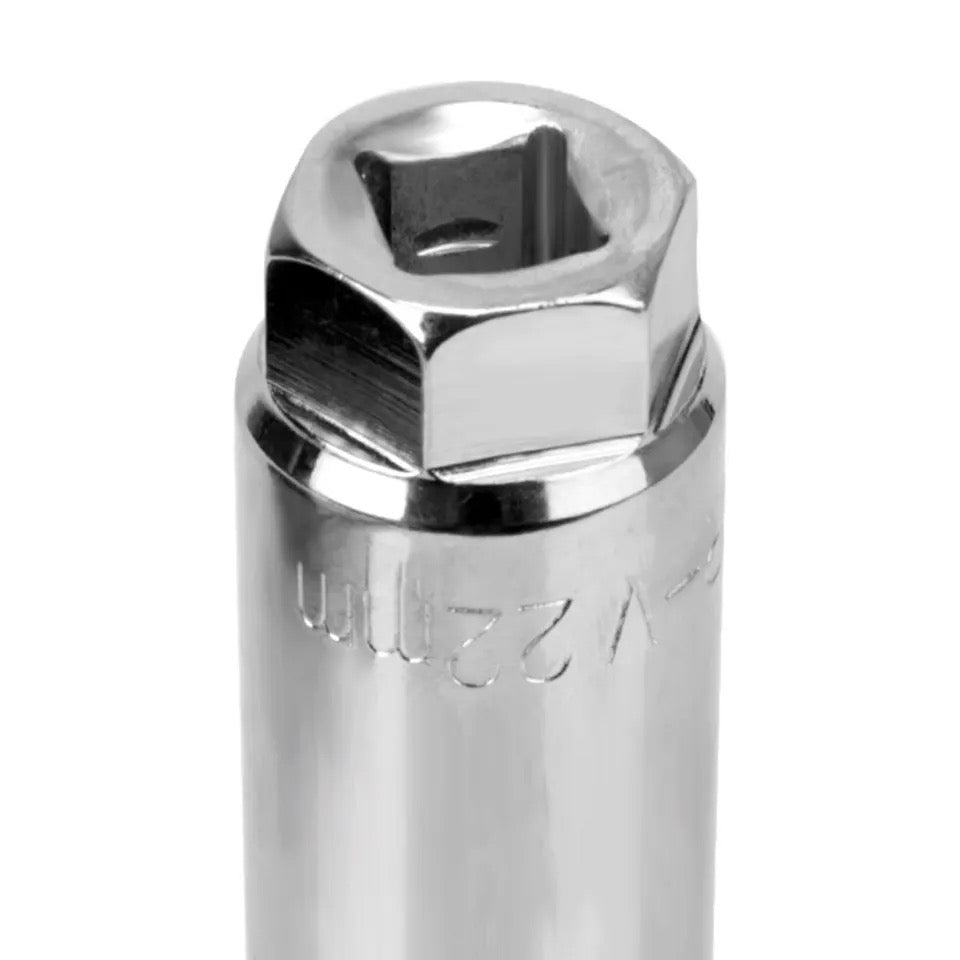 The 22mm 1/2" Drive Socket Wrench is a specialized tool designed for effortless removal and installation of oxygen sensors in vehicles.